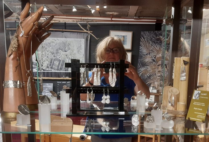 Pour les bijoux : Matériaux nobles, argent ou matériaux naturels ramassés sur place, tout est créé à l’atelier par une artisane d’art. Hommage à la beauté de la nature qui nous entoure.