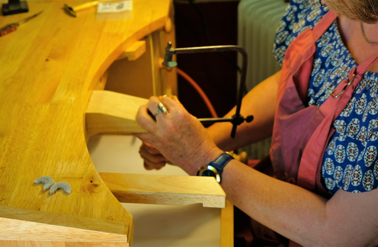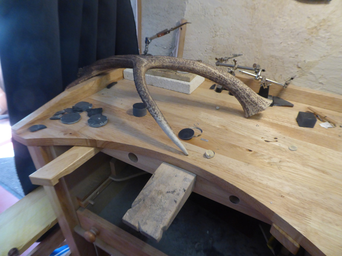 - Un atelier en activité dans lequel travaille Régine bijoutière,