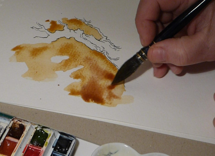 Pour les illustrations : Pinceaux, encre de chine et aquarelles sur papier coton. Tout est dessiné à la main.